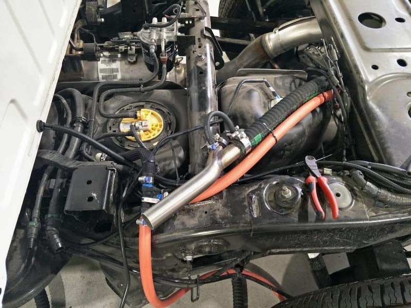 The small amount of room around the vehicle's standard fuel tank meant designing a larger replacement fuel tank would not give us the extra capacity we wanted. The only solution left was using the room behind the rear diff where the spare wheel is located. The large tubs and amount of customers opting for aftermarket trays with spare wheels mounted to the rear made this a perfect solution.