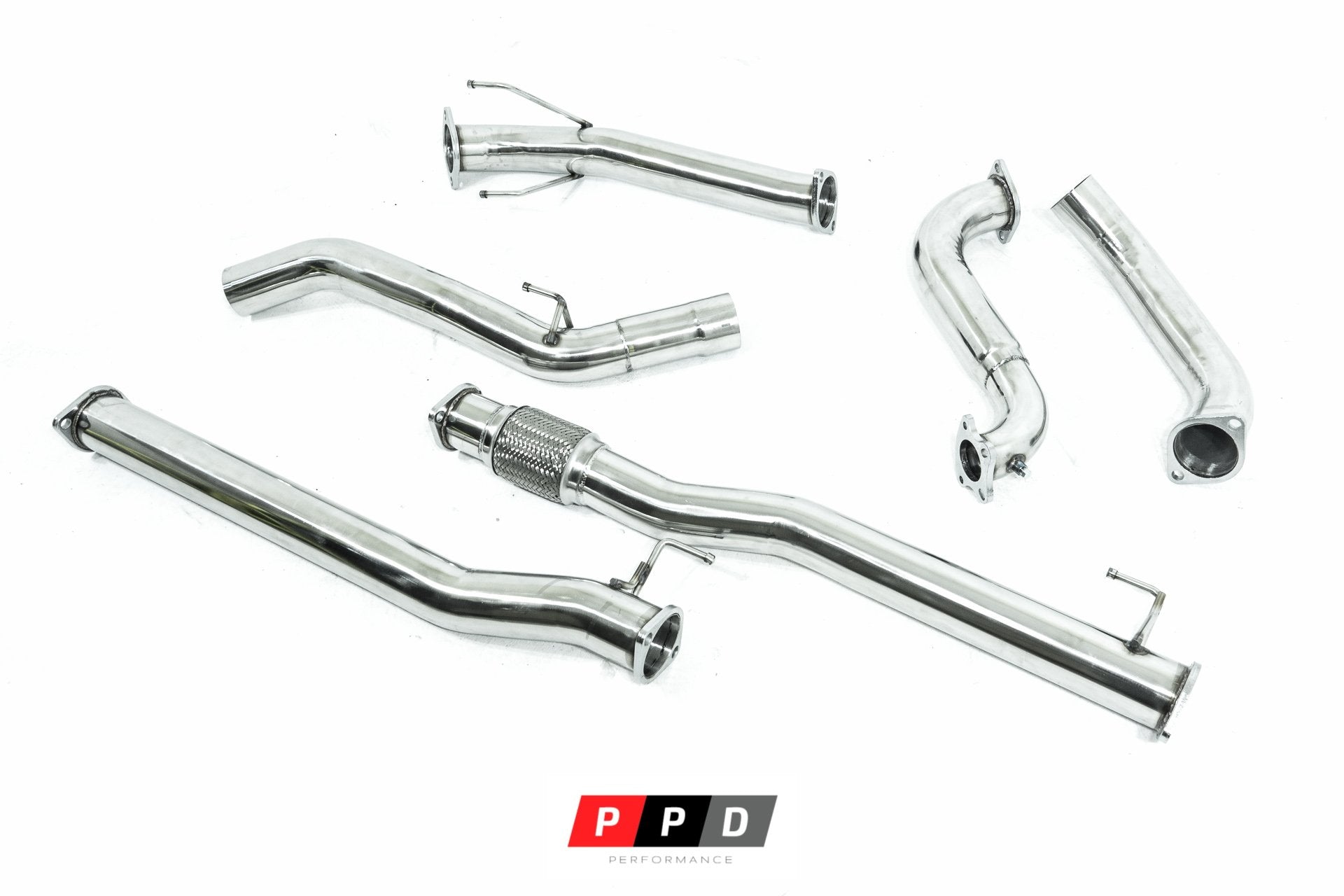 Replace the restrictive factory exhaust system with this brand new PPD Performance Polished Stainless Steel upgrade.