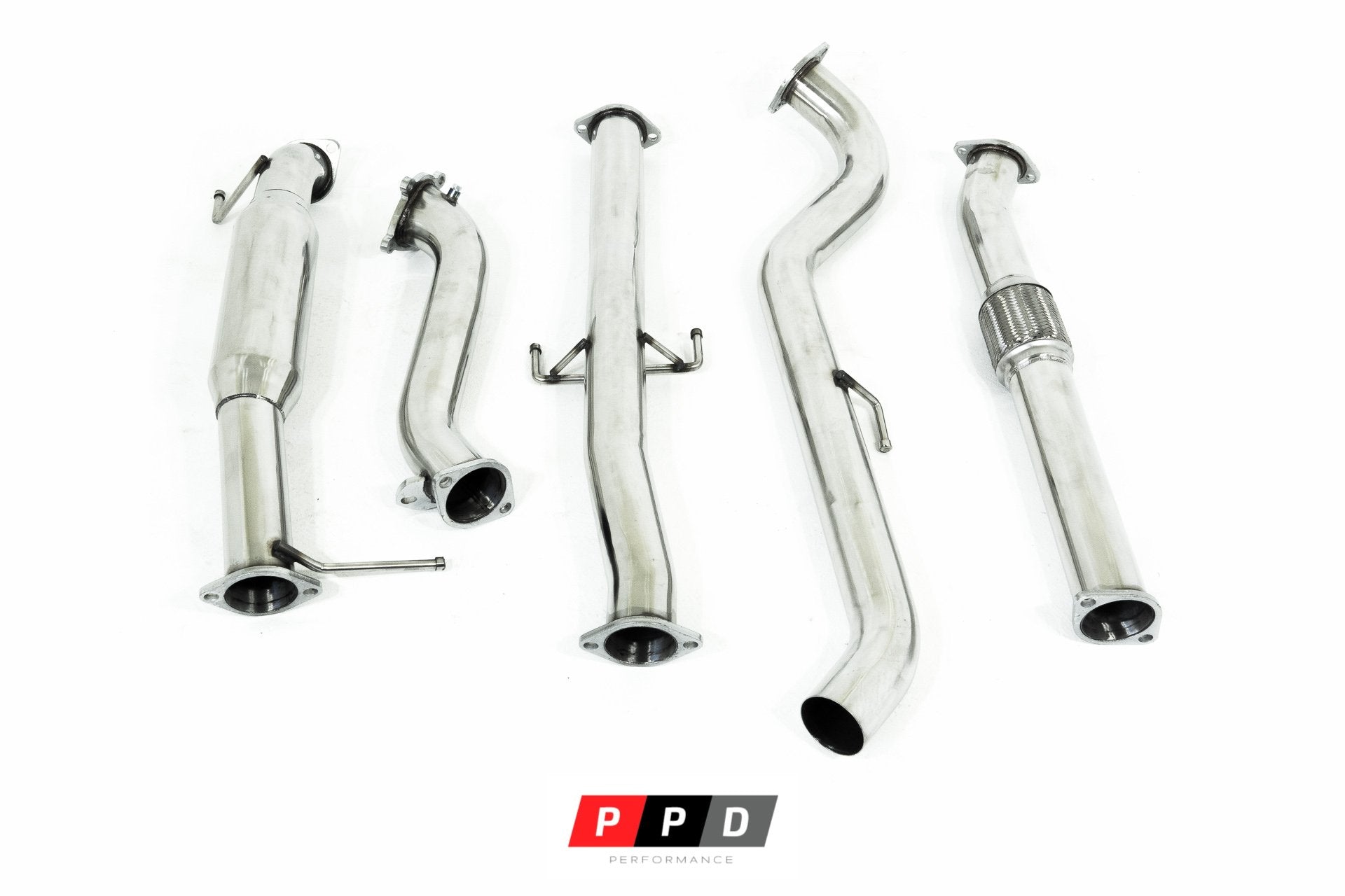 Replace the restrictive factory exhaust system with this brand new PPD Performance Polished Stainless Steel unit.