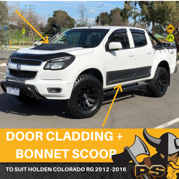 PS4X4 Matte Black Bonnet Scoop + Door Cladding Combo Holden Colorado 2012-2019