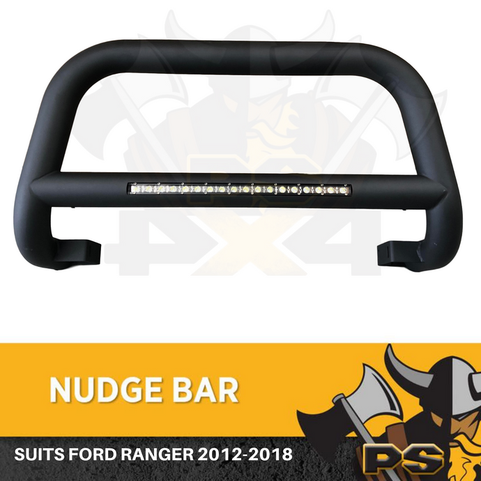 Nudge Bar For Ford Ranger 2012-2018 Matte Black Steel Grille Guard + Light Bar