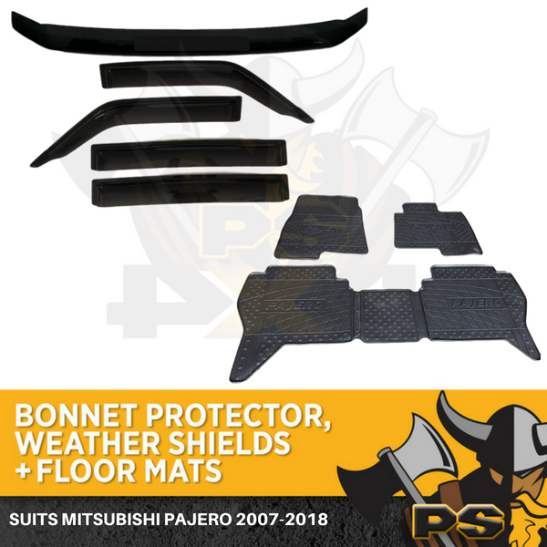 Bonnet Protector Window Visors & Floor Mats to suit Mitsubishi Pajero NS NX 07-19