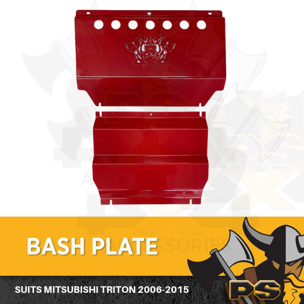 Bash Plate 4mm 2pcs Powder Coated Red to suit Mitsubishi Challenger PB PC / TRITON 06+ Sump Guard