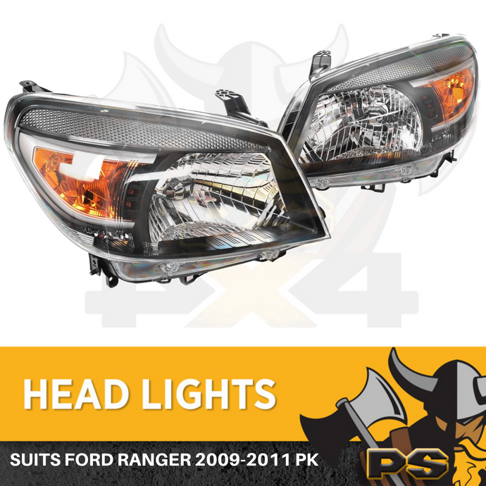 Head Lights to suit Ford Ranger PK 2009-2011 PAIR LH+RH Replacement headlight