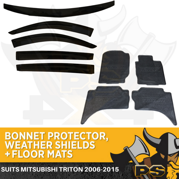 Bonnet Protector, Window Visors, Floor Mats suit Mitsubishi Triton 2006-2015
