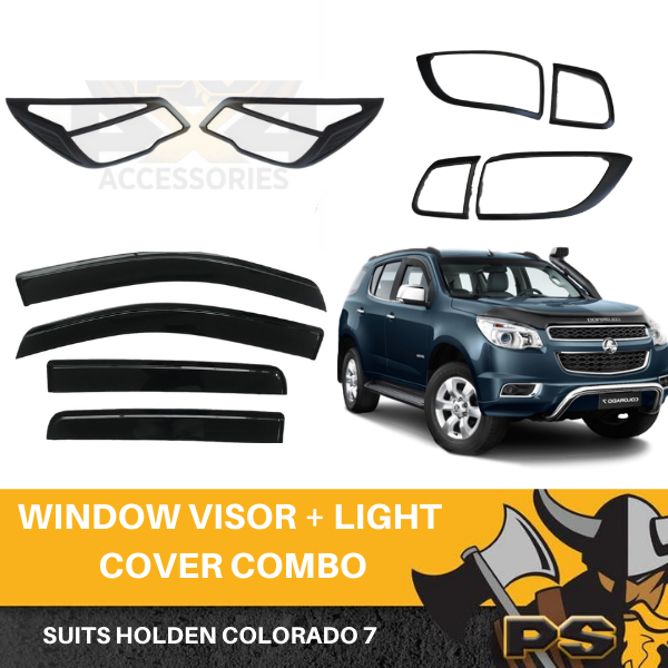 Black Headlight Tail light Lamp Covers + Window visor combo for Holden Colorado 7