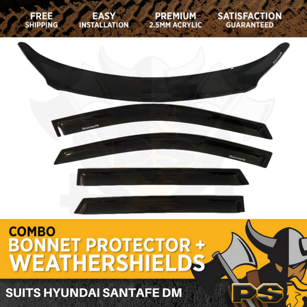 Hyundai Santa Fe 2012-2018 DM Bonnet Protector & Window Visors Weather Shields