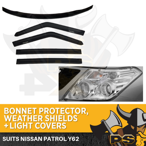 Bonnet Protector , Weathershields & Light Covers to suit Nissan Patrol Y62 2012-2019