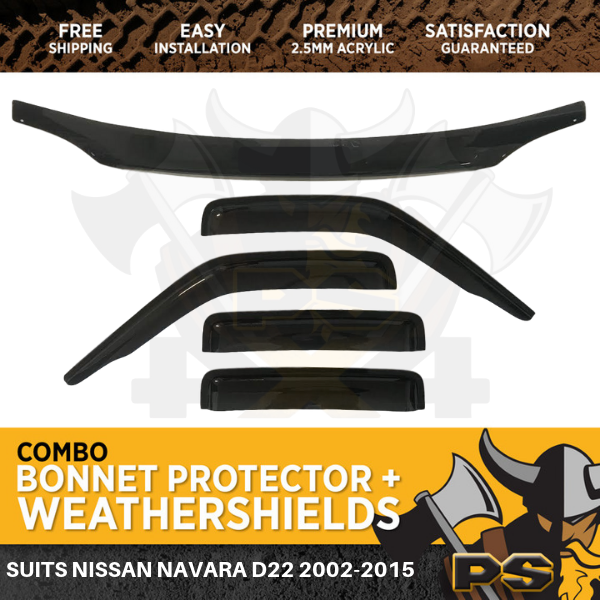 Bonnet Protector & Window Visors for Nissan Navara D22 2002-2015 Weathershields