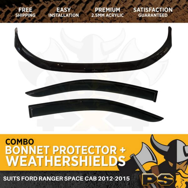 Ford Ranger PX2 PX3 2015-2022 Space Cab Bonnet Protector & Weathershield Visors