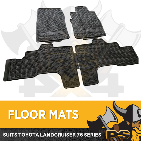 Rubber Floor Mats Front & Rear to suit Toyota Landcruiser 76 Series