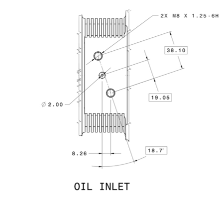 - Oil Feed: See graph below(OIL INLET) (1mm restrictor will be needed, prevent higher than 45psi oil pressure into turbocharger’s internals)