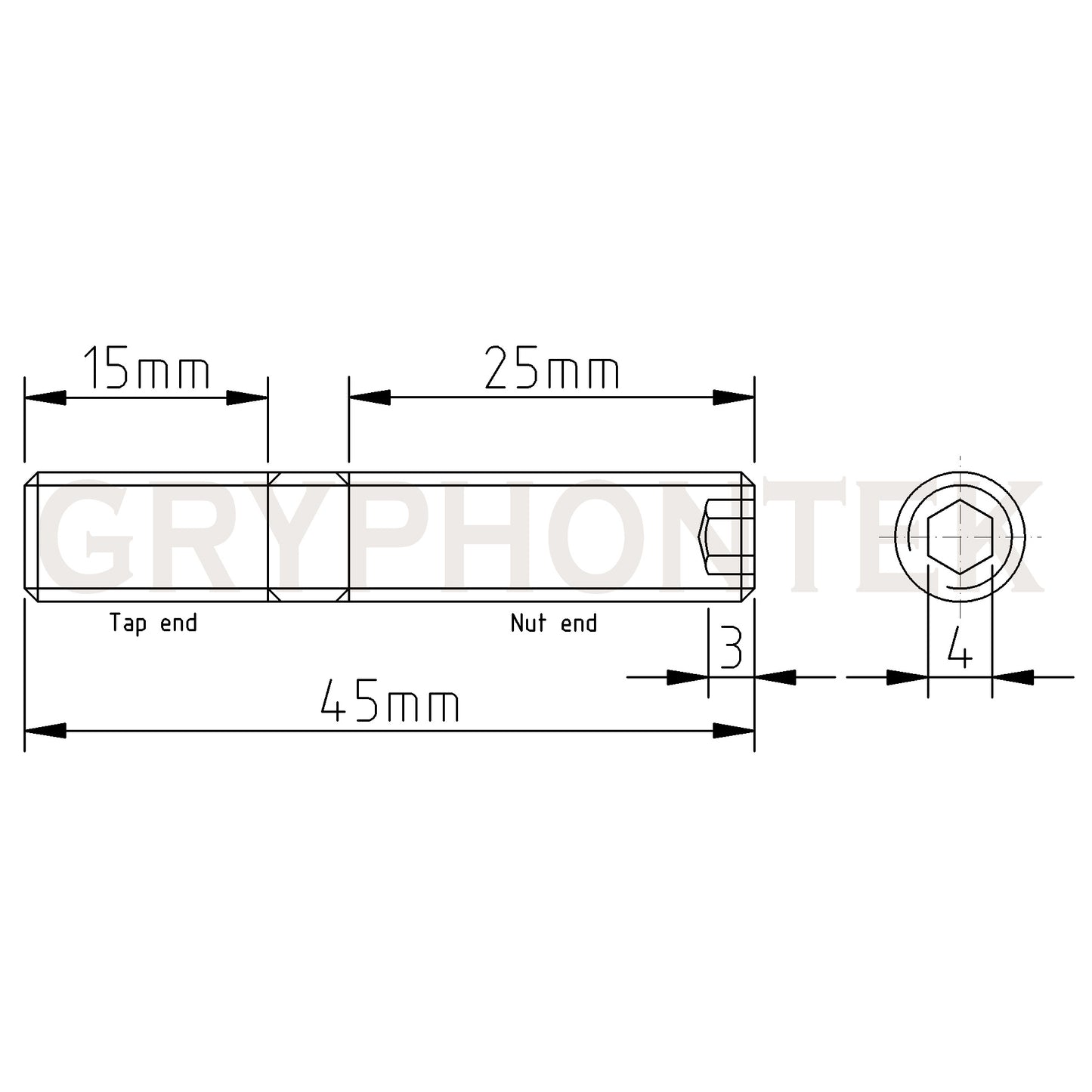 - Stud with an 4mm inner hexagon in the end so you can fit these stud with a hex key.