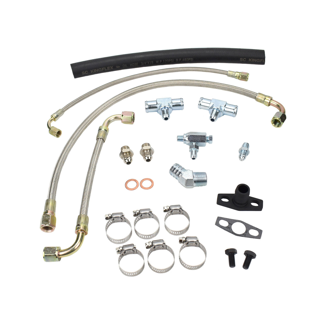 Turbo oil and water line fitting kit for Toyota 3L N/A engine to turbo. This kit should hopefully save you the bother of sourcing necessary parts for fitting.